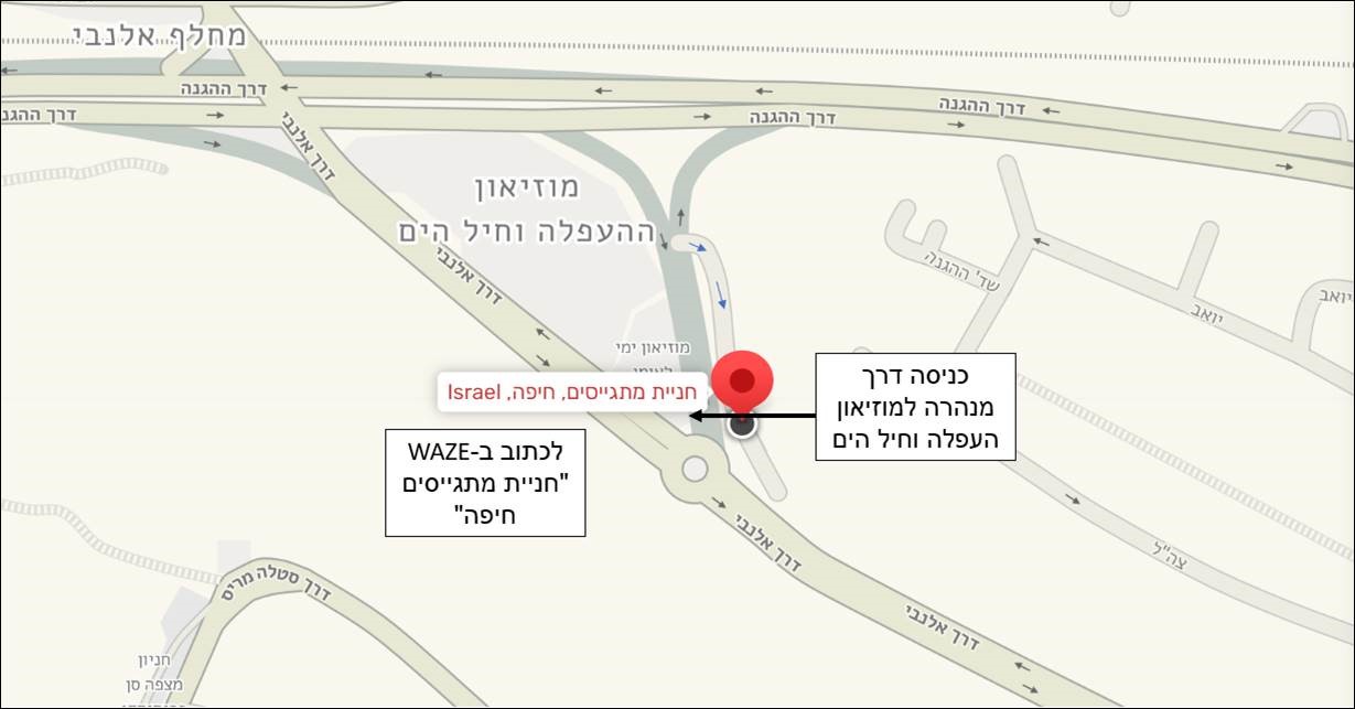 יש לכתוב ב-WAZE "חניית מתגייסים חיפה". בחניה להיכנס דרך מנהרה המובילה ישירות למוזיאון.