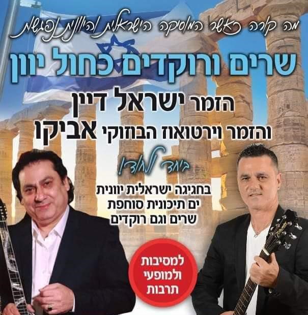 ביום חמישי, י"ט אלול תשפ"ב, 15.9.22, בשעה 18:30, כולנו יחד מקבלים את השנה החדשה במופע "שרים ורוקדים כחול יוון", עם הזמר ישראל דיין ווירטואוז הבוזוקי אביקו.
