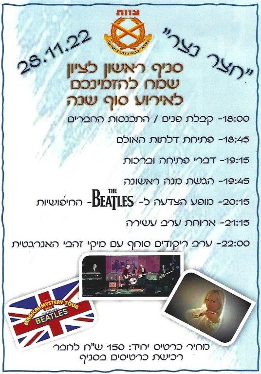 20:15 - מופע הצדעה ללהקת החיפושיות.