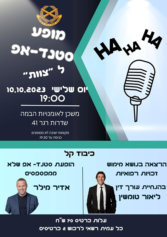 מופע סטנד אפ של אדיר מילר והרצאה בנושא מימוש זכויות רפואיות