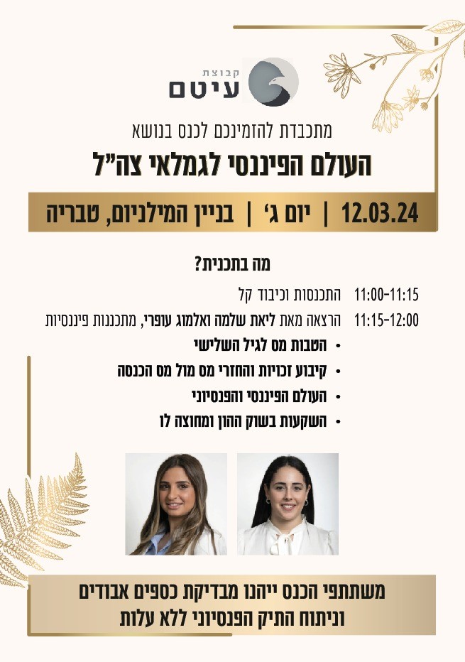 11:15-12:00 - הרצאה מאת ליאת שלמה ואלמוג עופרי, מתכננות פיננסיות: