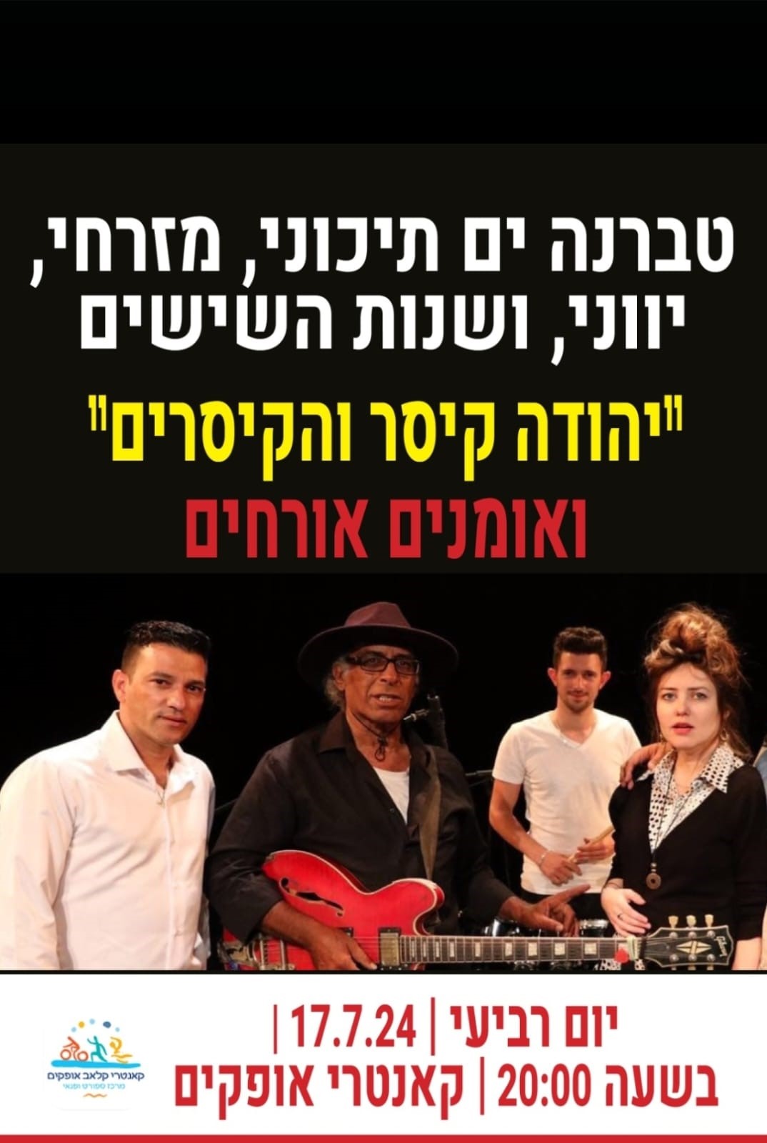 מוזמנים לחגיגת טברנה בקאנטרי קלאב אופקים, עם מוזיקה ים תיכונית, מזרחית, יוונית ושירי שנות השישים, בהשתתפות יהודה קיסר ו"הקיסרים" ואומנים נוספים.