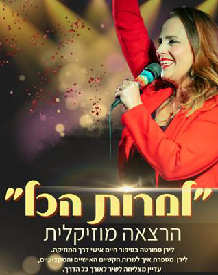 10:00 - "למרות הכל" - הרצאה מוזיקלית מעוררת השראה עם הזמרת הסוחפת לירן ספורטה.