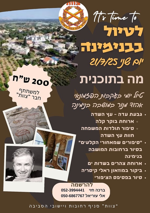 חברי סניף רחובות מוזמנים לטיול במושבה בנימינה בעקבות הפזמונאי אהוד מנור, ביום שני, 21.7.25.