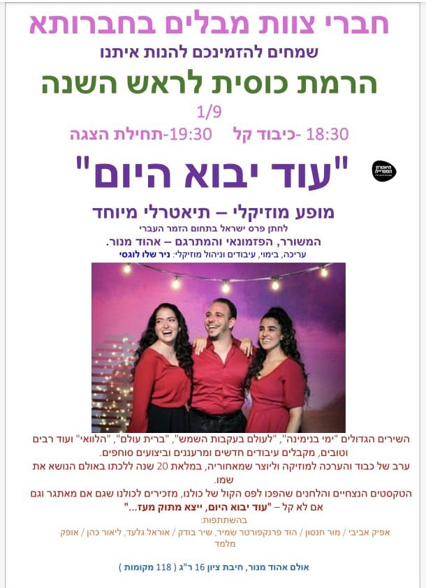 מופע מוזיקלי "עוד יבוא היום" והרמת כוסית לראש השנה בתיאטרון בית צבי