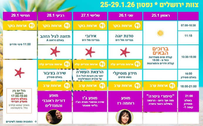 הנכם מוזמנים לנופש במלון נפטון אילת שיתקיים בין המועדים 25-29.1.26 ימים א'-ה'
