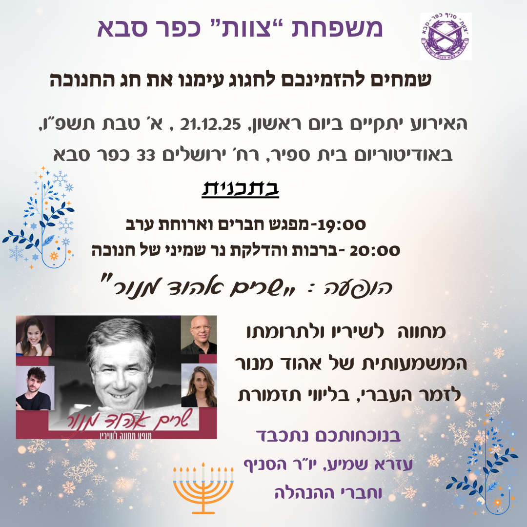 תאריך ושעה של האירוע: יום ראשון, 21.12.25 שעה 19:00