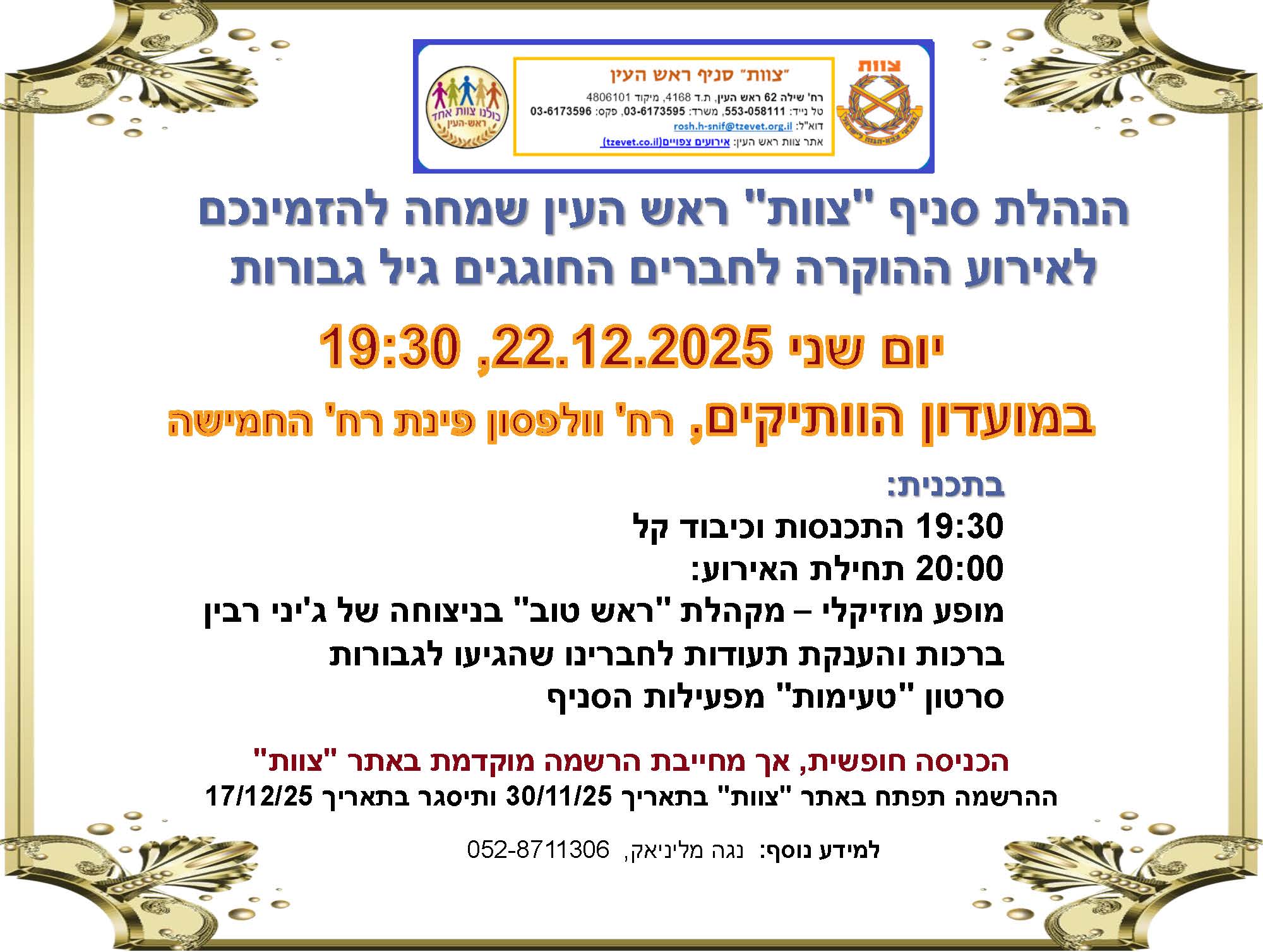 תאריך סיום מכירת כרטיסים באתר:17/12/2025