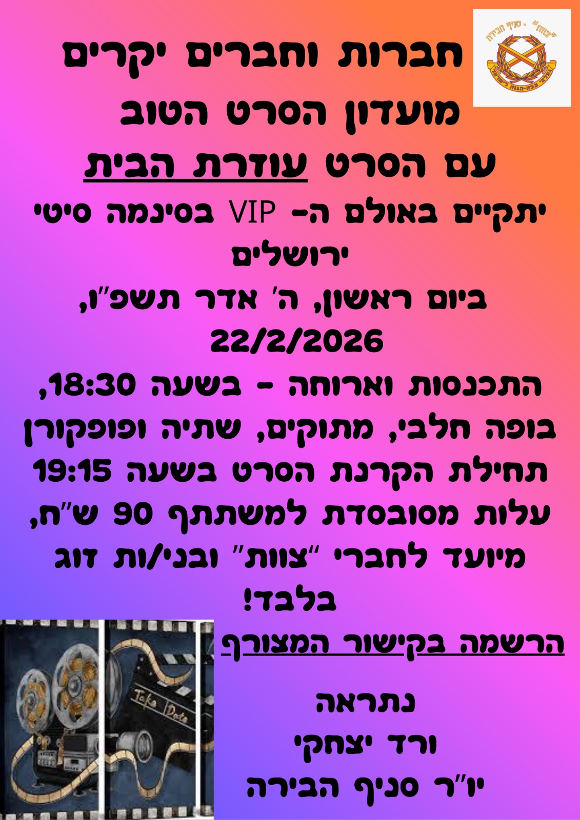 סניף הבירה מזמין את חבריו למועדון הסרט הטוב להקרנת של הסרט "עוזרת הבית"