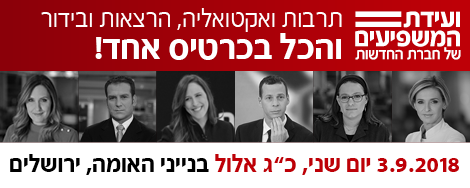 ועידת המשפיעים של חברת החדשות תתקיים ביום שני, 3.9.2018, בבנייני האומה בירושלים.