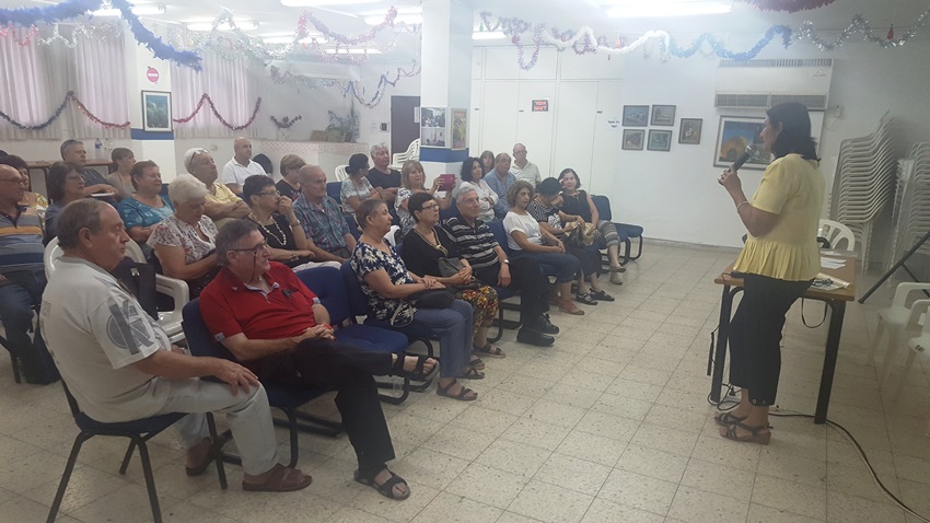 בתאריך 5.8.19 התקיימה הרצאתה של ליאורה בן דוד מעמותת אחת מתשע, "גילוי מוקדם - מציל חיים". המרצה סיפרה גם את סיפורה האישי, כשחלתה במחלת סרטן השד, ודיברה על דרכי התמודדות במחלה והטיפולים. סיסמתה "ניצחתי ואנצח". ההרצאה המרגשת היתה מלווה במצגת תמונות והסברים. ההרצאה היתה מרגשת.