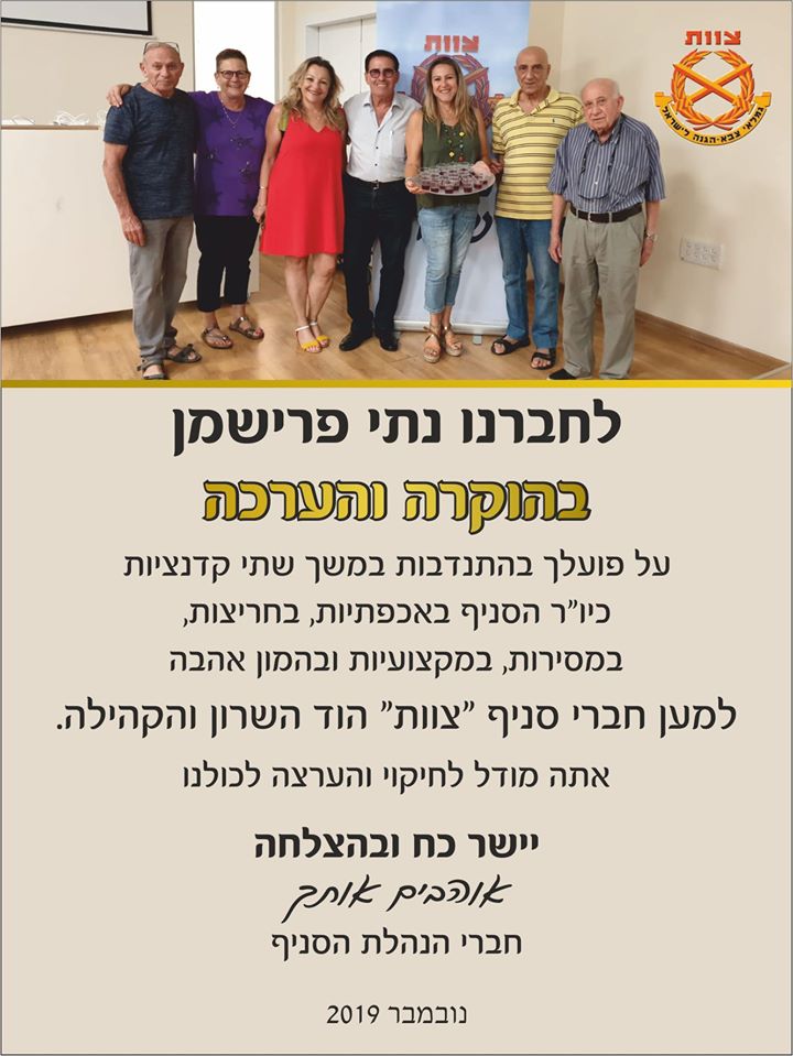 יו"ר סניף הוד השרון נתי פרישמן עומד לסיים את תפקידו בקרוב ואנחנו ניצלנו את מסיבת הלדינו שהתקיימה בסניף להוקרה והערכה על פועלו למען הסניף והקהילה.