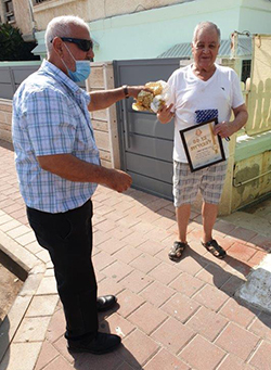 בתאריך 7.9.20 ערך מנהל המחוז, בהשתתפות מזכירת המחוז, יו"ר ועדת פרט הגב' שרי בנדט, חבר ההנהלה מר דוד אוחיון וחברת ההנהלה גב' אילנה חדד ביקור בביתם של החברים, שבו נמסרו להם התעודות עם השי, ואיחולי בריאות וחג שמח להם ולבני משפחתם. באותו יום ערך רכז הבריאות מר שלמה סולומון ביקור בבית חולים אצל אחד החברים באוכלוסייה זו ומסר לו את התעודה והשי במקום, בלוויית איחולי רפואה שלמה וחג שמח. מר יוסי בן שלוש מסר את התעודה למר חיים קיקוס בבית האבות "דורות בנגב".