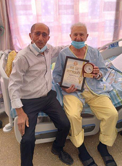 בבית החולים ומר יוסי בן שלוש מעניק את התעודה בבית האבות.