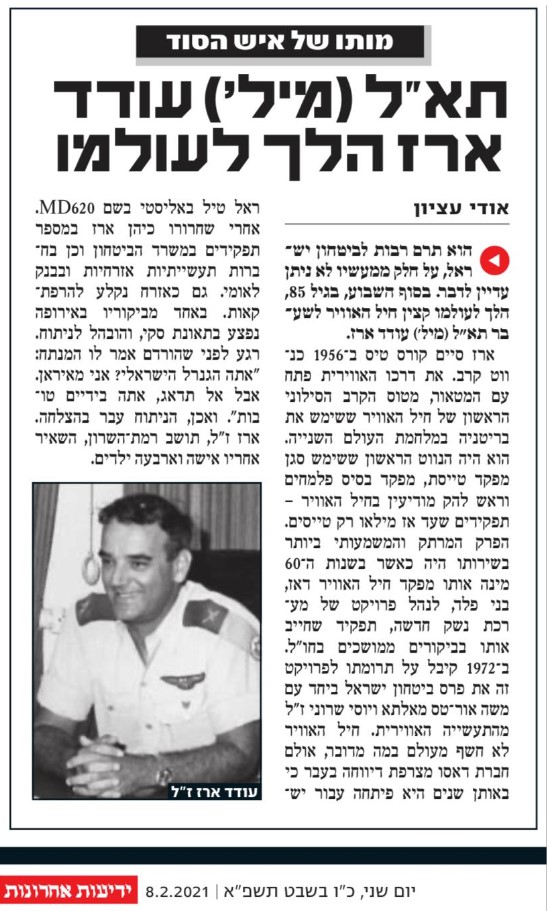 הכרתיך בשנת 1973, כשאתה נווט בכיר בטייסת 201 וראש ענף הגנה במחלקת מבצעים בחיל האויר, ואני הקצין הטכני של 201. כך גם עברנו את מלחמת יום הכיפורים ומאז נפרדו דרכנו, למעט פגישות אקראיות. אתה לכיוון כלי טיס בלתי מאוישים ואני לכיוון מטת"א (מפקד טיסת תחזוקה) חצרים. אתה מנהל פרויקט מסווג עליו קיבלת את פרס ביטחון ישראל, וממשיך לתפקיד מפקד בח"א 30 (פלמחים) ורלמד"ן (ראש להק מודיעין), ואני יורד ל"בור" השליטה של חיל האוויר, להיות מפקד השליטה של המערך הטכני בחיל האוויר. אתה משתחרר ועושה מגוון תפקידים חריג בכמותו ובאיכותו בסקטור האזרחי ואני לדרכי בסקטור הפרטי והציבורי.