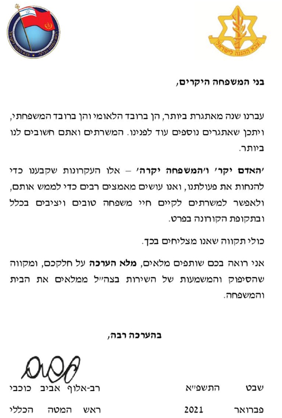 איגרת הרמטכ"ל ליום המשפחה