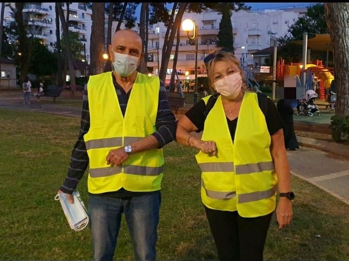 חברי הסניף אורנה ואלי ממשיכים לסייר ברחובות הוד השרון ולחלק עלוני הסברה על הגנה נכונה מפני קורונה.
