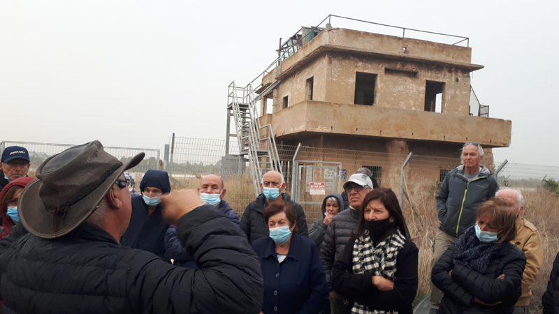 לאחרונה יצאנו, חברי צוות סניף יבנה, לסיור באותם שדות תעופה. את הסיור החלנו במרכז ראש העין, שהייתה בזמנו מחנה בריטי ענק. יום אחד בשעת צהריים, כשהעובדים במקום יצאו לאכול, פרצה חוליה של לוחמי אצ"ל לנשקייה, וגנבה משם עשרות כלי נשק. מעניין היה לראות את המבנים הישנים הבנויים מאבני סיליקט ומקורים בגגות פח עגולים, מבנים המוכרים לנו עוד מתקופת השירות הצבאי.