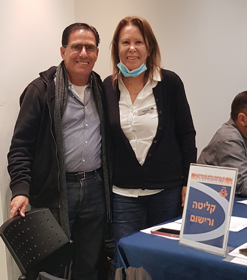 במסגרת ימי פרישה, נציגת מחוז השרון רחל פתאל מסניף כפר סבא נוטלת חלק בגיוס חברים/ות חדשים/ות לארגון "צוות". בתמונה עם יו"ר המחוז נתי פרישמן.