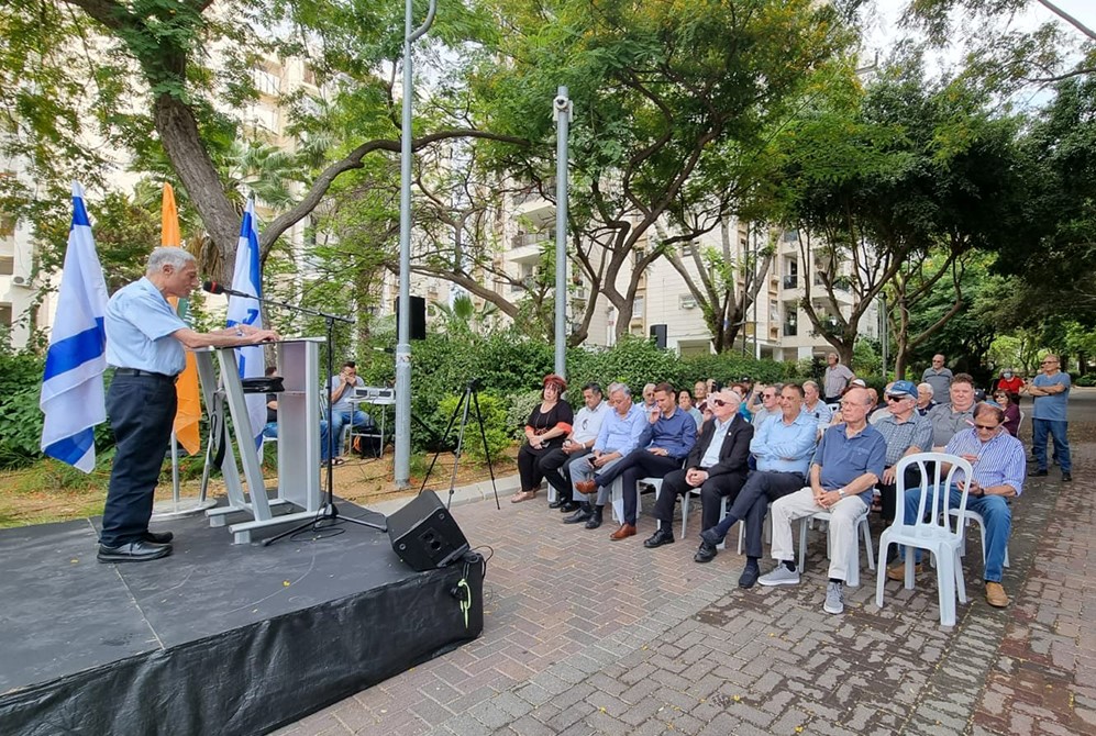 יו"ר סניף ראשון לציון לשעבר לורנס יצחק נושא דברים בטקס לחנוכת כיכר צוות בעיר