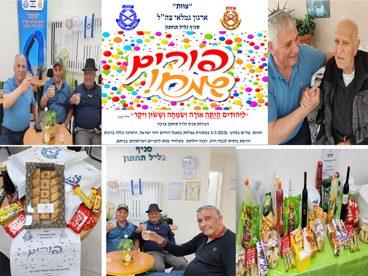 ב-5.3.23 התקיימה בסניף חגיגת פורים, במסגרת הפעילות במעגל החיים וחגי ישראל. החגיגה כללה ברכות והרמת כוסית לכבוד החג וכן הכנה וחלוקה של משלוחי מנות לחברים המרותקים בביתם.
