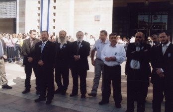 בתמונה משמאל לימין: ראש עיריית י-ם אורי לופוליאנסקי ואחריו חבר הנהלת מחוז י-ם נענה יעקב ומשמאלו הרב יוסף וסרמן יו"ר מחוז י-ם