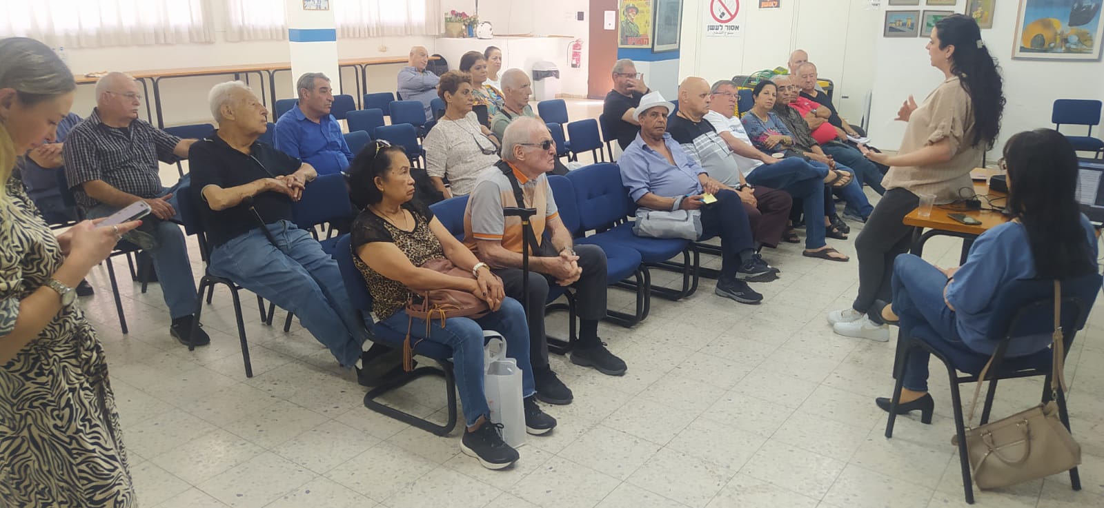בתאריך 1.4.2024 התקיימה הרצאה בנושא "שירותים בקהילה", על ידי קבוצת תיגבור, המפעילה 75 קהילות תומכות ברחבי הארץ וכ-1,000 בתי אב, מקריית שמונה ועד אילת, המספקות שירותים לבתי אב ולקשישים. סל השירות בקהילות התומכות לאזרחים ותיקים כולל מוקדי מצוקה, שירותי רפואה וביטחון, פעילות חברתית, קהילות תומכות חיים עצמאיים לנכים. בתום ההרצאה קיבלו החברים שי.