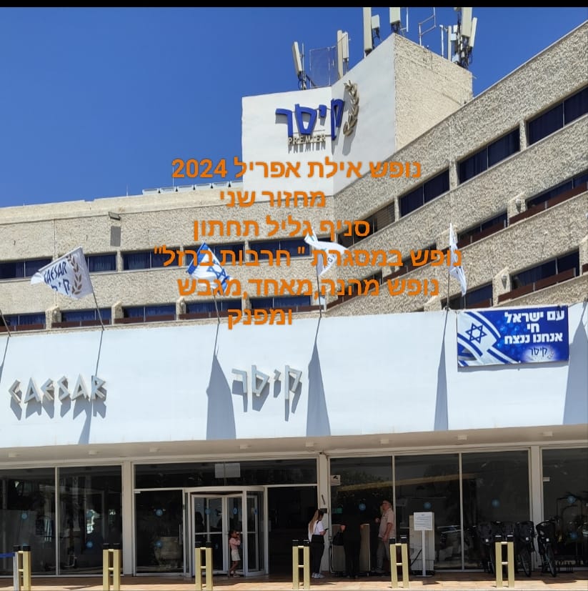 חברי סניף גליל תחתון יצאו למחזור שני של נופש במלון קיסר באילת במועדים 14-18/4/2024. לבקשת החברים, הנופש כלל השתתפות בני משפחה. הנופש היה מצוין, עם פעילות מגוונת, השירות במלון אדיב ומקצועי, האוכל מגוון וטעים, החדרים נעימים, מרווחים ונקיים, לצד מזג אוויר נעים אשר הוסיף לאווירה האביבית.