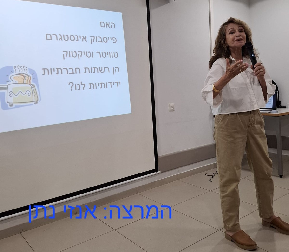 ב-26.8.24 נפגשנו 49 מחברי צוות רמת גן ושמענו את הרצאתה של אנזי נתן: האם טיקטוק, טוויטר, אינסטגרם ופייסבוק הן רשתות ידידותיות? שמענו כיצד הרשתות "משעבדות" אותנו, מוציאות מאתנו מיידע לתועלתן, מבצעות הסחות דעת ומפעילות בוטים, ולמדנו איך להכיר מיהו בוט ומי המתחזה.