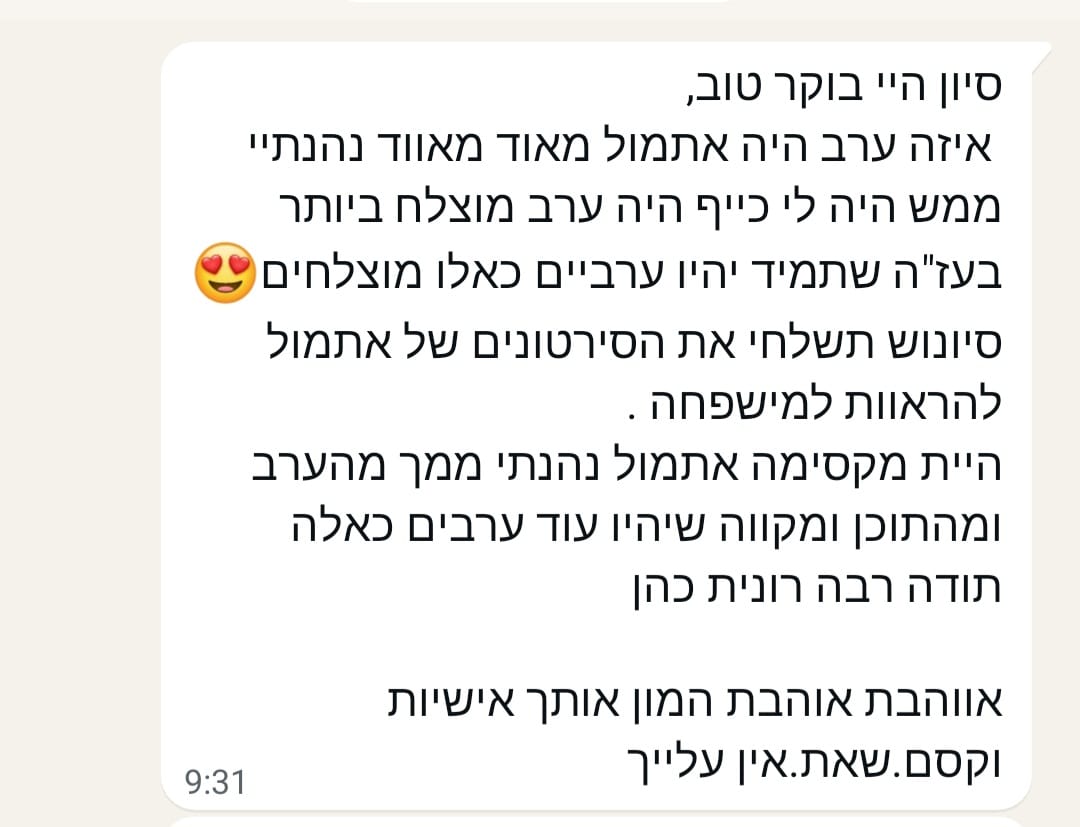 הערב היה מוצלח וגרף המון מחמאות ובקשות להמשך קיום אירועים מסוג זה.