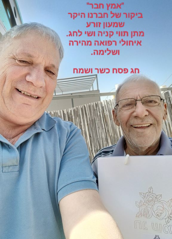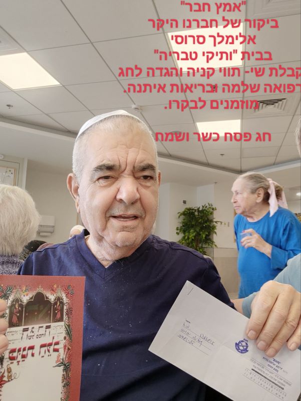 לקראת חגי האביב התשפ"ה הנהלת הסניף מבקרת את החברים המרותקים לביתם, עם שי סמלי וצנוע וברכה מכל החברים ומכל הלב.