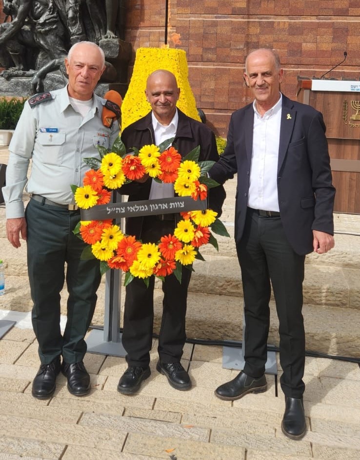 יו"ר מחוז ירושלים רענן אהרונסון, מנהל המחוז שמעון מלכה וחבר המחוז שמעון דרעי הניחו את זר "צוות" בטקס המרכזי ביום הזיכרון לשואה והגבורה ביד ושם.