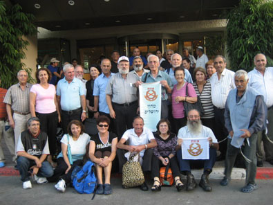 בתמונה: החברים/ת שהשתתפו ביום כיף בפתח המלון. באמצע, עם הכובע הלבן, הרב יוסף וסרמן - יו"ר המחוז ומימינו שמעון מלכה - מנהל המחוז