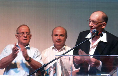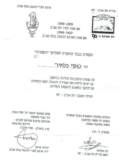 מאיר שפי (מימין) מקבל תעודת הוקרה