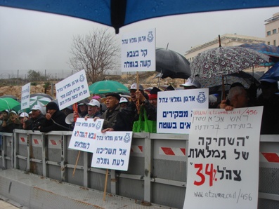 למעלה מ-350 גמלאי צה"ל התייצבו ביום ראשון 30.1.11 תחת גשם שוטף והפגינו במחאה על הפגיעה בכבודם עקב שחיקת הגמלאות.