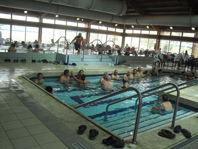 בתמונה: חלק מחברי המחוז שהשתתפו נהנים ממתקני חמי געש