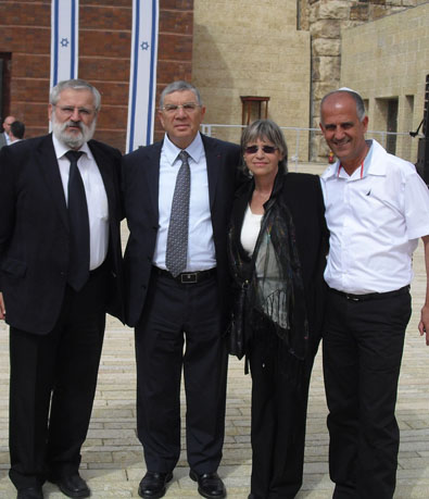 מימין לשמאל: שמעון מלכה מנהל המחוז, צביה פריד מהיכל השמות של "יד ושם" וגמלאית של "צוות", אבנר שלו יו"ר יד ושם, והרב יוסף וסרמן יו"ר המחוז