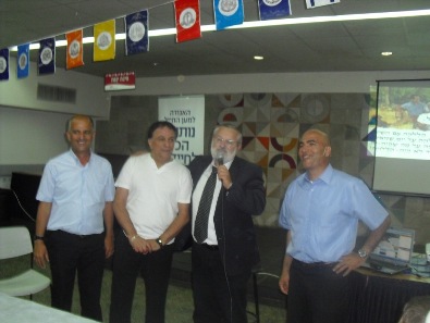 מימין לשמאל: האומן עודד כהן, הרב יוסף וסרמן-יו"ר המחוז, הבדרן בבר אלימלך ושמעון מלכה-מנהל המחוז