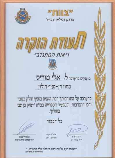 ב- 8 בספטמבר 2011 נערך הכנס השנתי של מחוז דן. השתתפותם של חברי סניף חולון הייתה טובה. במסגרת הכנס הוענקו תעודות הוקרה על התנדבותם לנציג אחד מכל סניף. לאלי מוריס הוענקה תעודת הוקרה בהערכה על התנדבותו רבת השנים בסניף חולון כגזבר ורכז התנדבות, וכמפעיל הספרייה בבי''ס ''יצחק בן צבי'' בחולון.