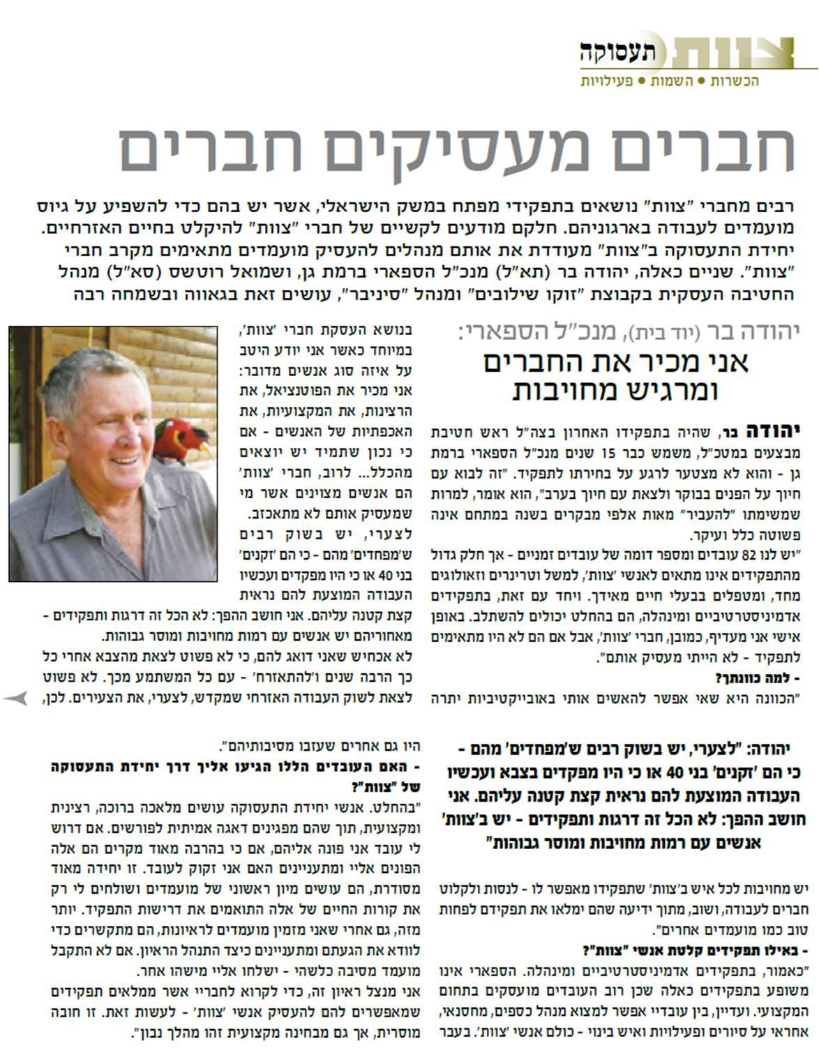 "לצערי יש בשוק רבים ש'מפחדים' מהם - כי הם 'זקנים' בני 40 או כי היו מפקדים בצבא ועכשיו העבודה המוצעת להם נראית קצת קטנה עליהם. אני חושב ההפך: לא הכל זה דרגות ותפקידים. יש ב'צוות' אנשים עם רמות מחויבות ומוסר גבוהות"