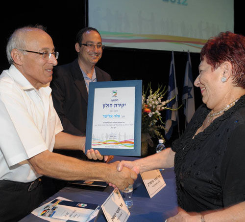 אלה מקבלת את התואר מראש עיריית חולון מוטי ששון