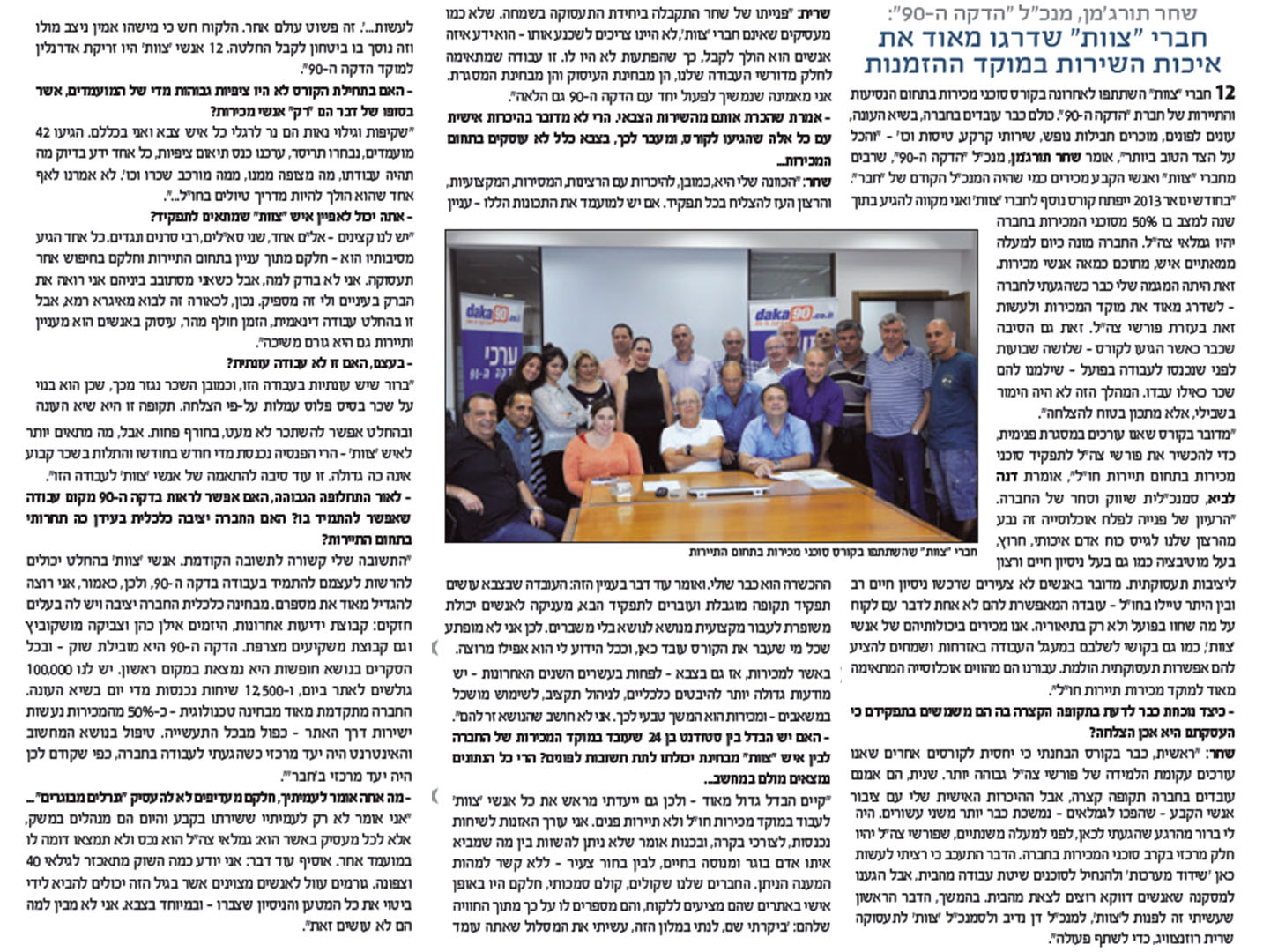 "חברי 'צוות' שדרגו מאוד את איכות השירות במוקד ההזמנות". 12 חברי הארגון השתתפו לאחרונה בקורס סוכני מכירות בתחום הנסיעות והתיירות של חברת הדקה ה-90 וכולם כבר עובדים בחברה