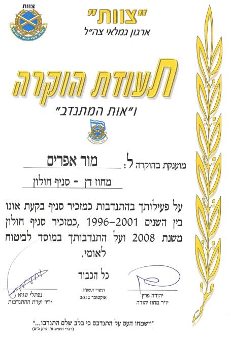 במסגרת הכנס הוענק לנציג אחד מכל סניף תעודת הוקרה על התנדבותו. תעודת הוקרה הוענקה לאפרים מור על פעילות בהתנדבות כמזכיר סניף בקעת אונו בין השנים 1995-2001 וכמזכיר סניף חולון משנת 2008.