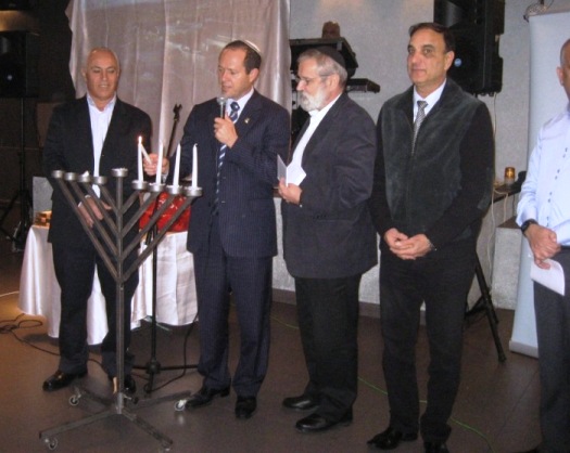 מימין לשמאל: דן נדיב מנכ"ל "צוות", הרב יוסף וסרמן יו"ר המחוז, ניר ברקת ראש עריית י-ם, שמעון דרעי יו"ר סניף ירושלים בטקס הדלקת הנרות