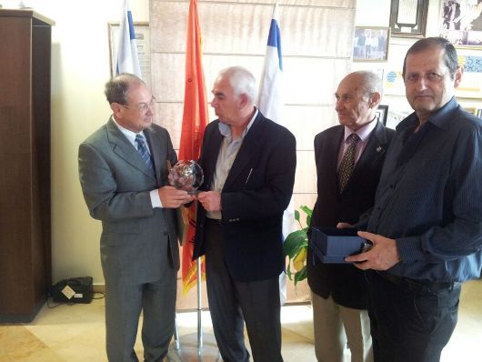 בתמונה: יו"ר סניף אשקלון מעניק לראש העירייה מגן הוקרה