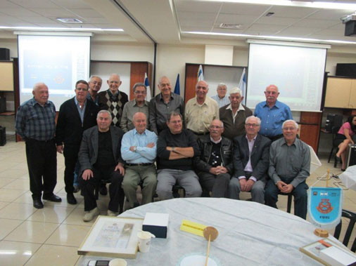 בתמונה, יושבים מימין לשמאל: יוסי פורת יו"ר הסניף, שמעון סלוצקי, צבי בן דב (זילברמן), יהודה פרץ יו"ר מחוז דן, חיים רותם, חיים דור-אל (דונש).