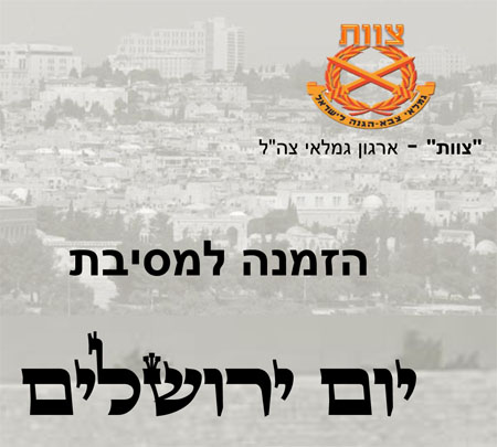 חברי "צוות" מוזמנים לאירוע לכבוד יום ירושלים שייערך ביום שלישי, כ"ז אייר תשע"ג, 7 במאי 2013, בשעה 19:30 במלון רמת רחל