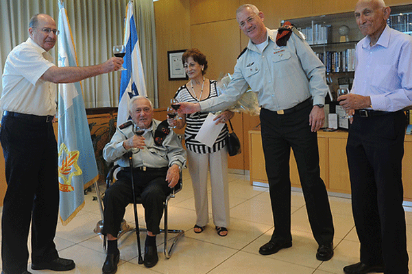אלוף פונדק זוכה לדרגת הנכספת. מימין: יו"ר צוות, ד"ר ברוך לוי; הרמטכ"ל בני בנץ; אלוף פונדק; שר הביטחון משה יעלון