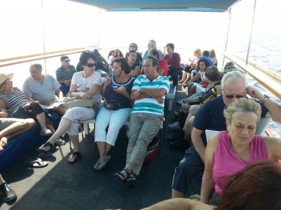 ביום שישי, לאחר ארוחת בוקר, הפלגנו במשך כשעתיים בספינה עם קרקעית מזכוכית לשמורת האלמוגים ולאחר מכן לאורך הגבול הירדני. השיט לווה בהסברים במשך כל הסיור.
