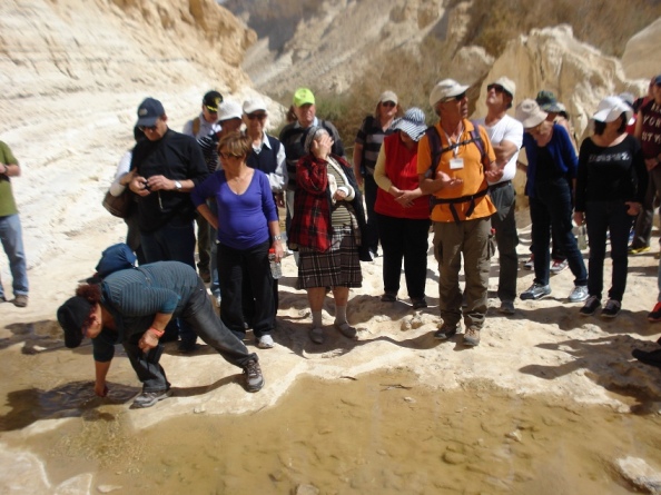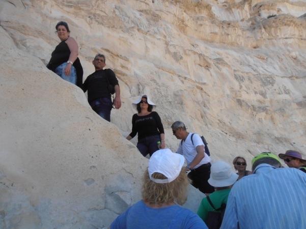 לא התעכבנו בעיר הבה"דים, אלא המשכנו דרומה, למדרשת בן גוריון בשדה בוקר. אחרי תצפית והסבר על הטופוגרפיה של נחל צין נסענו אל החניון התחתון של עין עבדת, בו פרקנו את תרמילינו, העמסנו מים על הגב ויצאנו למסלול חוויתי בן שעתיים דרך הברכות והמעיינות, כולל טיפוס במעלה המצוק, שבסופו נעזרנו גם בסולמות הקבועים למצוק. בראש המצוק גילינו תצפית נהדרת על מעיינות ומפל עין עבדת. סניף חדרה הוכיח שגמלאים יכולים לטפס וליהנות גם במסלולים קשים אם מתארגנים בהתאם. (מותר לפרגן).
